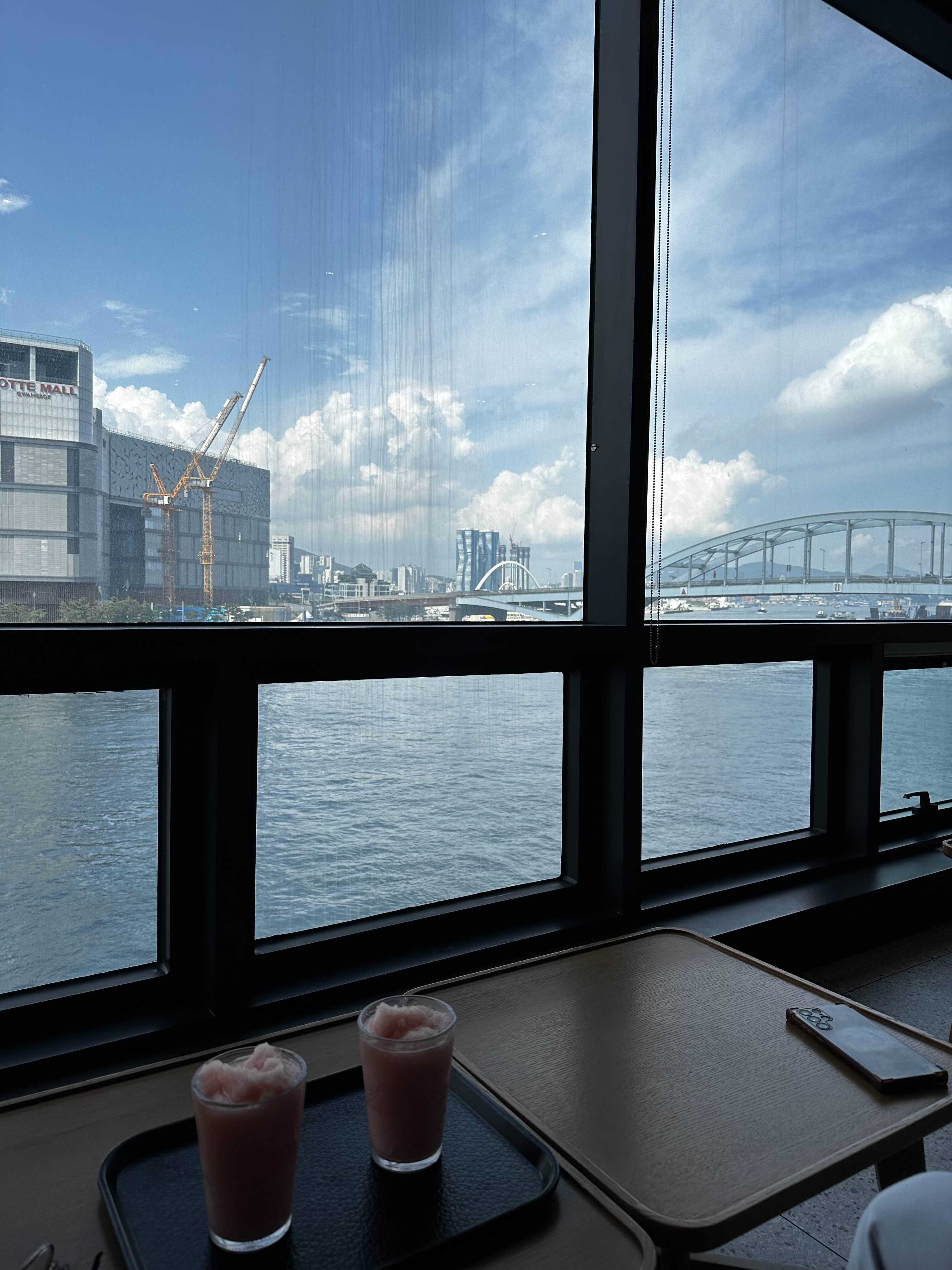 다 구경하고 예전에 와봣던 다리가 보이는 스벅에서 시원한 음료 한잔! 아마 50% 할인 이벤트 있었던 기억이난다.